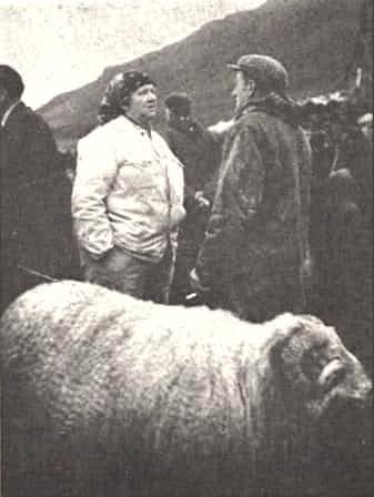 Mynd frá Arnarhamarsrétt. Fólkið á myndinni er talið vera Inga á Vallá (Ingveldur Þorsteinsdóttir) og Hörður mjólkurbílstjóri